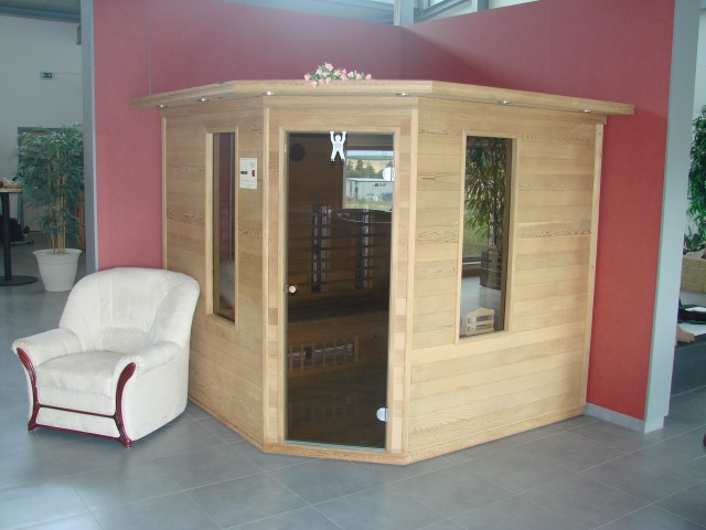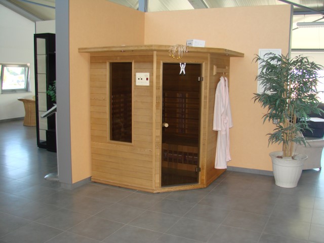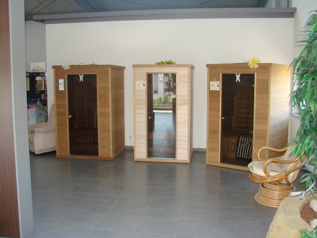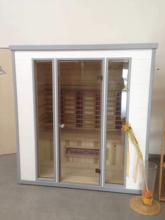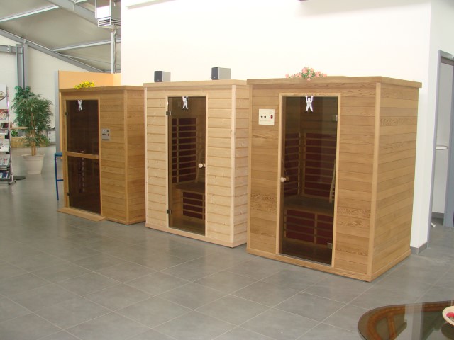 Rollstuhlfahrer mit eigens entworfenen Infrarotkabinen